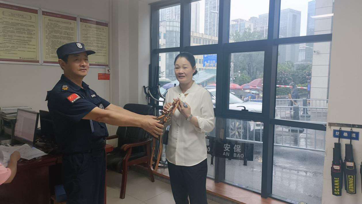 8月2日,中医附一保安大队员工谭文在执勤时发现一个被遗失的手提包,他迅速将手提包送至保安大队办公室登记备案。经现场检查后立即将相关情况发到群内,并通知其他同事如发现失主可前来认领。半小时后,一位女士匆忙赶到办公室,焦急地询问是否有人捡到一个手提包。该女士带父亲看病,因急着搀扶老人去挂号,下车时不小心将包遗忘在地上,包里装有病历资料、医保卡等重要物件,且这些材料补办起来比较麻烦,丢失将影响后续治疗。“我父亲的病情耽误不得啊!”谢女士焦急地说道。